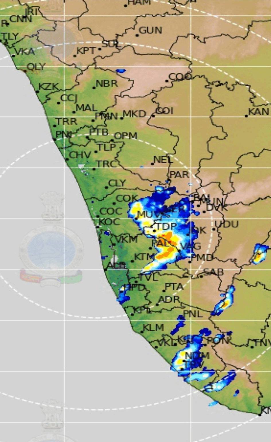 എറണാകുളം കോട്ടയം ഇടുക്കി പത്തനംതിട്ട തിരുവനന്തപുരം ജില്ലകളുടെ വിവിധ/ചില ഭാഗങ്ങളിൽ ശക്തമായ ഇടിമിന്നലോട് കൂടിയ മഴ നിലവിൽ ലഭിക്കുന്നുണ്ട്. മേൽപ്പറഞ്ഞ ജില്ലകളുടെ പടിഞ്ഞാറൻ ഭാഗങ്ങളിലും കൊല്ലം ആലപ്പുഴ ജില്ലകളുടെ ചില ഭാഗങ്ങളിലും വരും മണിക്കൂറുകളിൽ ശക്തമായ ഇടിമിന്നലോട് കൂടിയ മഴയ്ക്ക് സാധ്യത. തൃശൂർ മലപ്പുറം കോഴിക്കോട് ഉൾപ്പെടെയുള്ള ചില ജില്ലകളുടെ ചില/ചുരുക്കം ചില ഭാഗങ്ങളിലും രാത്രി/നാളെ പുലർച്ചയോടെ മഴ സാധ്യതയുണ്ട്. ശക്തമായ ഇടിമിന്നലിനും കാറ്റിനും എതിരെ അതീവ ജാഗ്രത പാലിക്കുക.